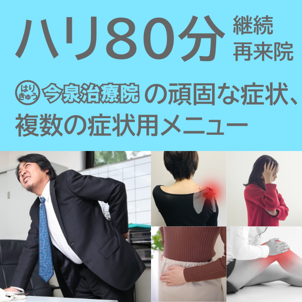 はりきゅう今泉治療院では、様々な症状・お悩みを持つ皆様が針灸治療を受けやすいように、利用目的に応じて選べるメニューを用意しております。